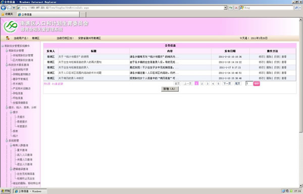 | 本系統(tǒng)軟件是育齡婦女技術(shù)服務(wù)的縣級(jí)在線管理軟件,對育齡婦女管理系統(tǒng)的補(bǔ)充和延伸。也是全國唯一的計(jì)生科技服務(wù)管理軟件。 縣級(jí)計(jì)生委只要有SQL2005以上的服務(wù)器即可運(yùn)行,可實(shí)現(xiàn)每天的兩次備份,避免數(shù)據(jù)的丟失。所有操作用戶只要在能上互聯(lián)網(wǎng)、操作系統(tǒng)為WINDOWS 2000/xp/2003的電腦中即可,無需安裝軟件,簡單方便。 | ||||||||||||||||||||||||||||||